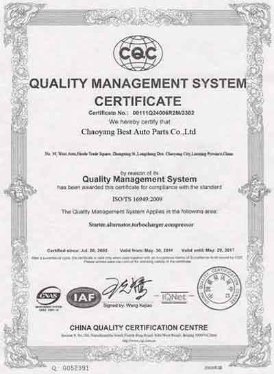 朝陽百思特汽車配件有限公司是一家銷售高質(zhì)量的起動機,發(fā)電機,增壓器及壓縮機等汽車電器的專業(yè)公司。所有產(chǎn)品都達到OEM標(biāo)準(zhǔn)。